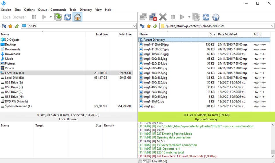 Στο παρακάτω στιγμιότυπο από FTP Client, θα δείτε και μόνοι σας τον αριθμό των αρχείων που παρήχθησαν από την εικόνα img1.jpg
